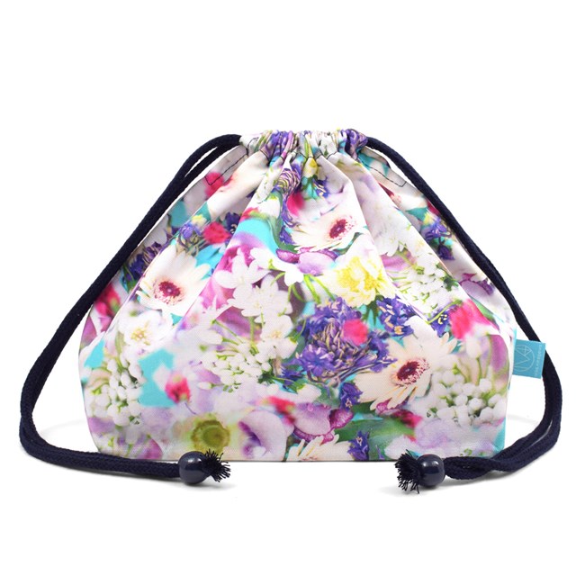 M / mika ninagawa × COLORFUL CANDY STYLE 巾着 中 ホワイト・パープル 子供用 中 マチ有りお弁当袋 お弁当 巾着 お弁当袋 キッズ お弁当バッグ ランチ 巾着 ランチ袋 幼稚園 幼児 お弁当 袋 おしゃれ
