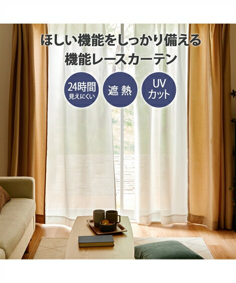 カーテン 明るい光と風をほどよく通す遮熱・24時間見えにくいレース 無地/リーフ柄/クラシカル柄 幅100×長さ135cm ニッセン nissen